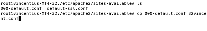 Liat isi folder dengan perintah 'ls' kalian akan melihat file "000-default.conf" copy file tersebut dengan perintah 'cp 000-default.conf "namakalian".conf'.