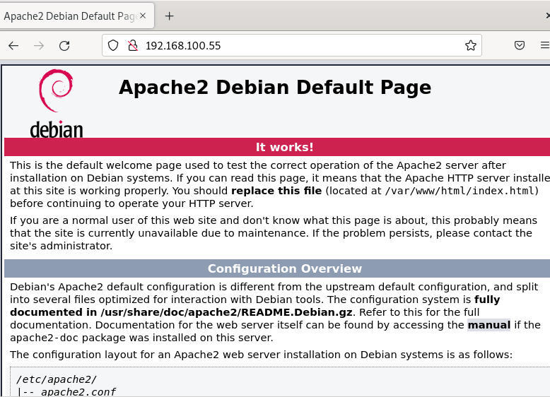 Buka Firefox di debian lalu ketik ip kalian dan enter. Jika tampil halaman apache2 seperti pada gambar maka kalian bisa ke tahap selanjutnya.