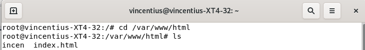Balik lagi ke terminal lalu pergi ke folder/directory html dengan perintah 'cd /var/www/html' lalu ketik perintah 'ls' untuk melihat list atau/daftar file yang ada di folder..